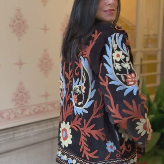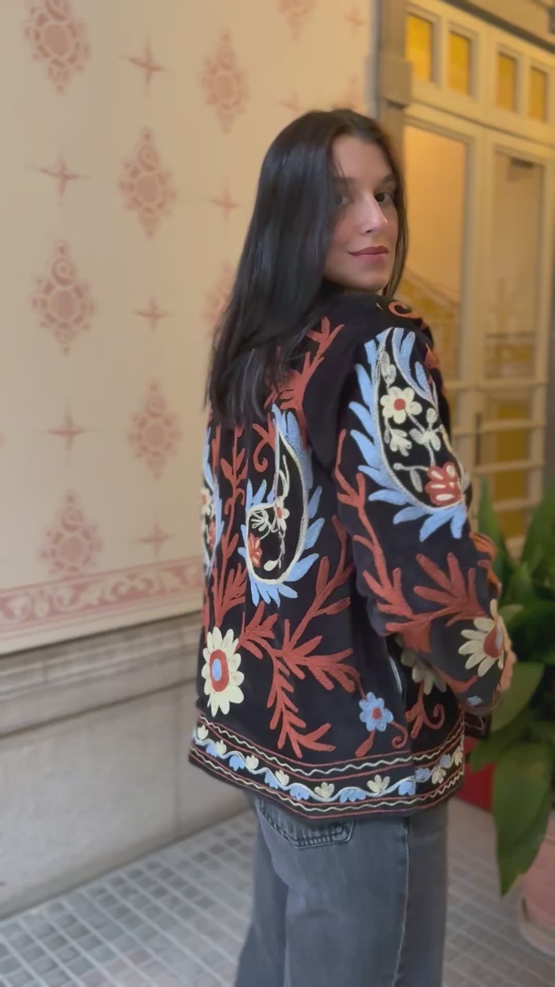 Flame Velvet Suzani Embroidered Jacket - Black One Size