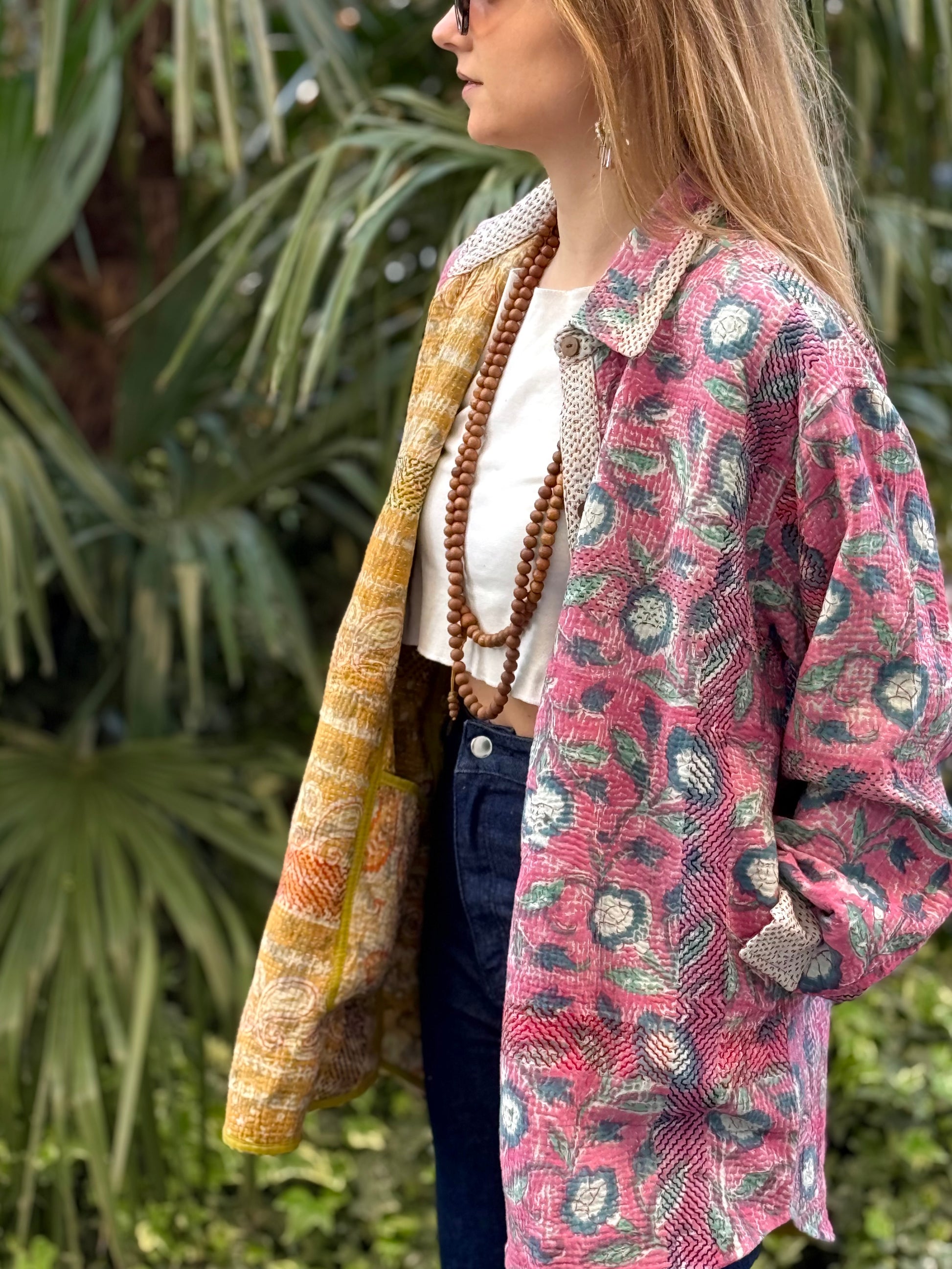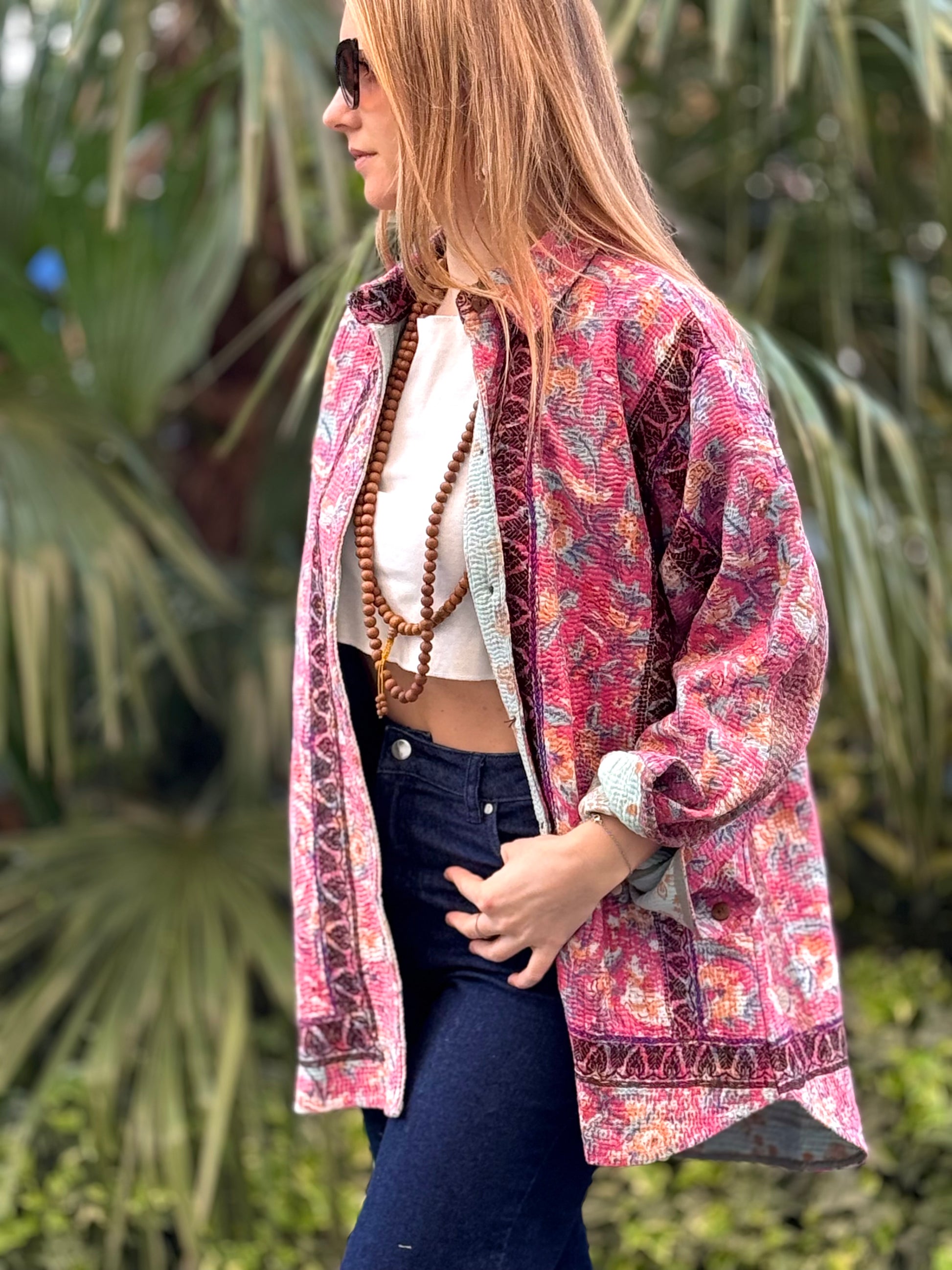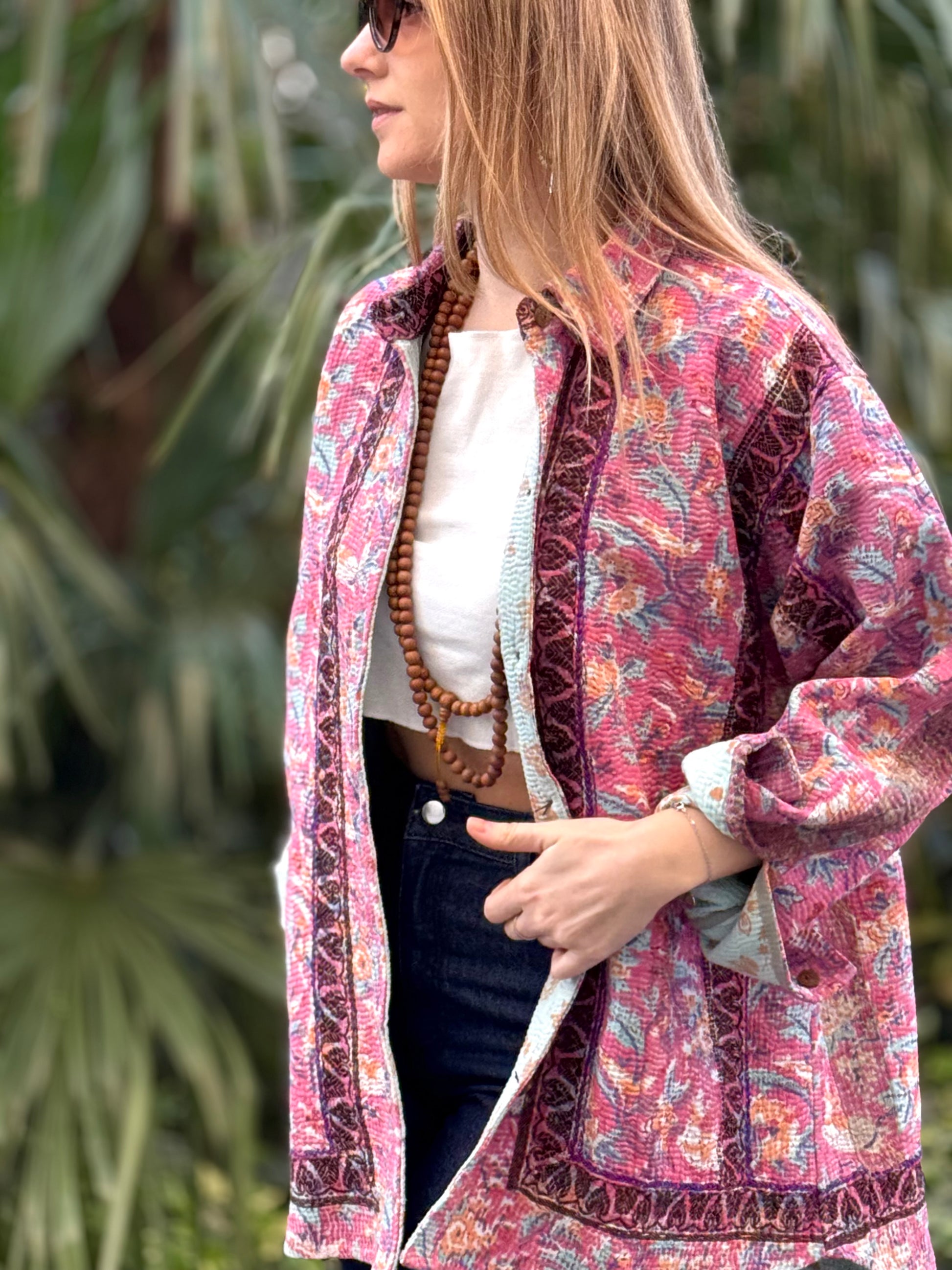 Over-Shirt Jacket with vintage Kantha fabric