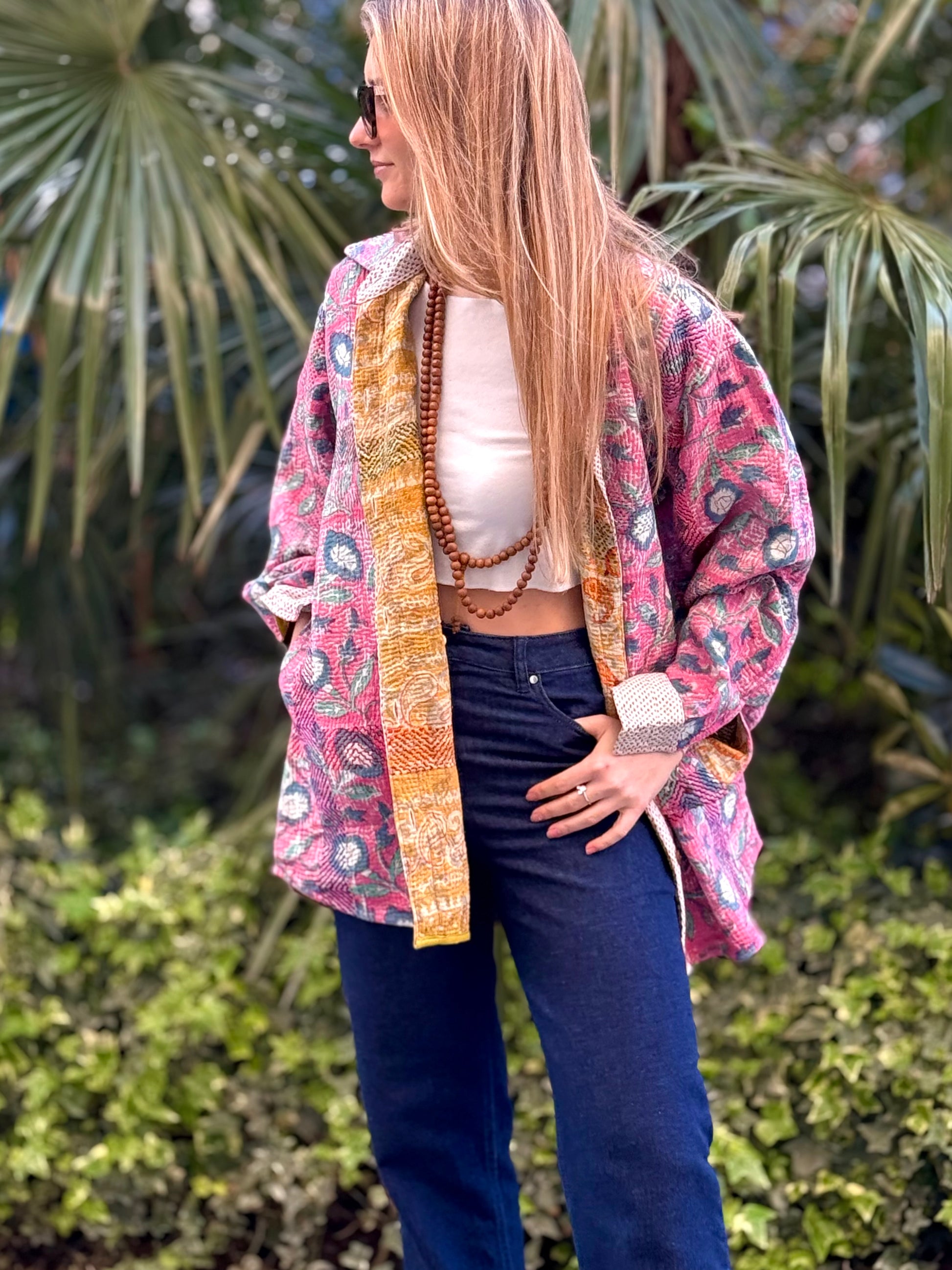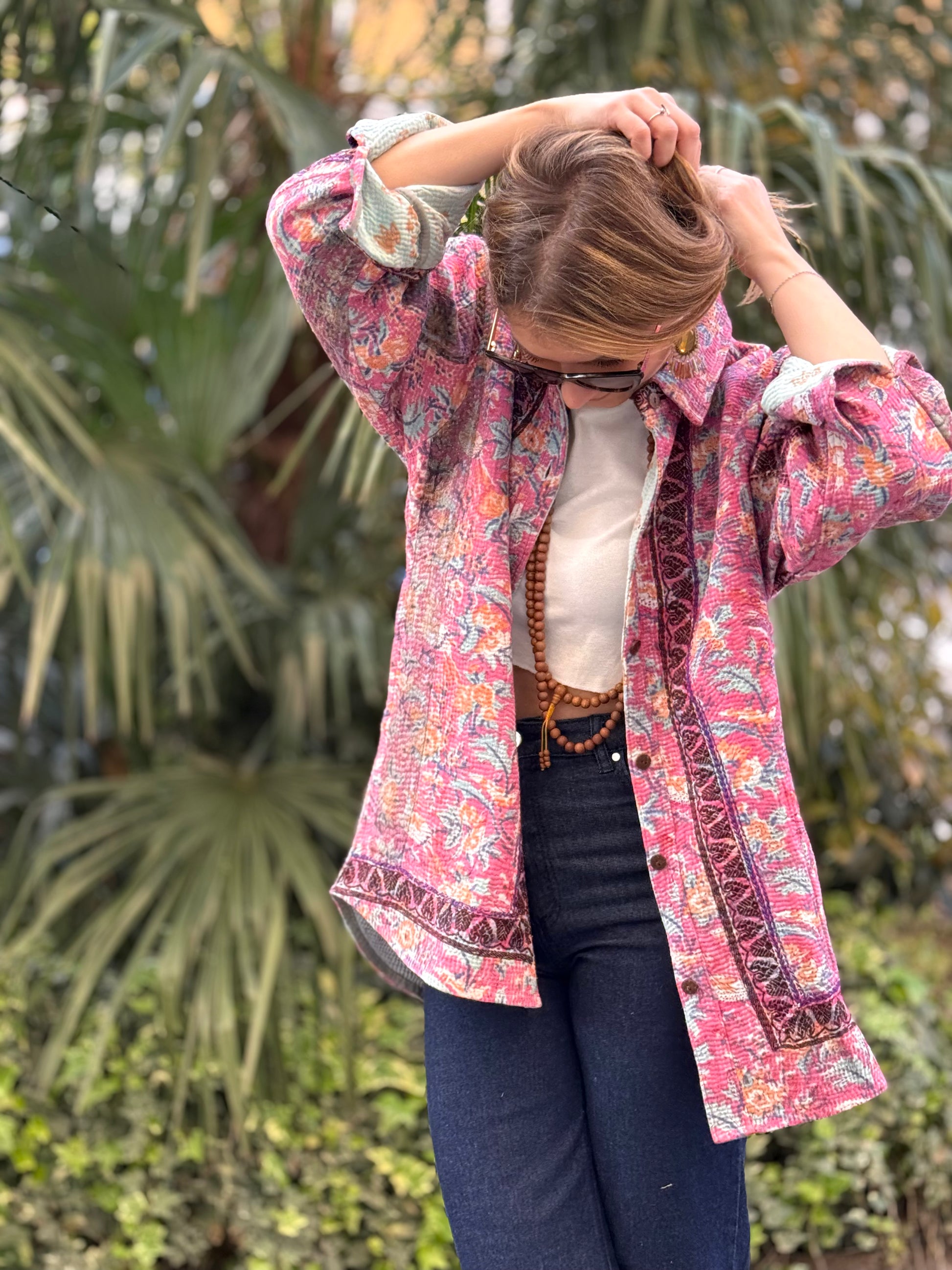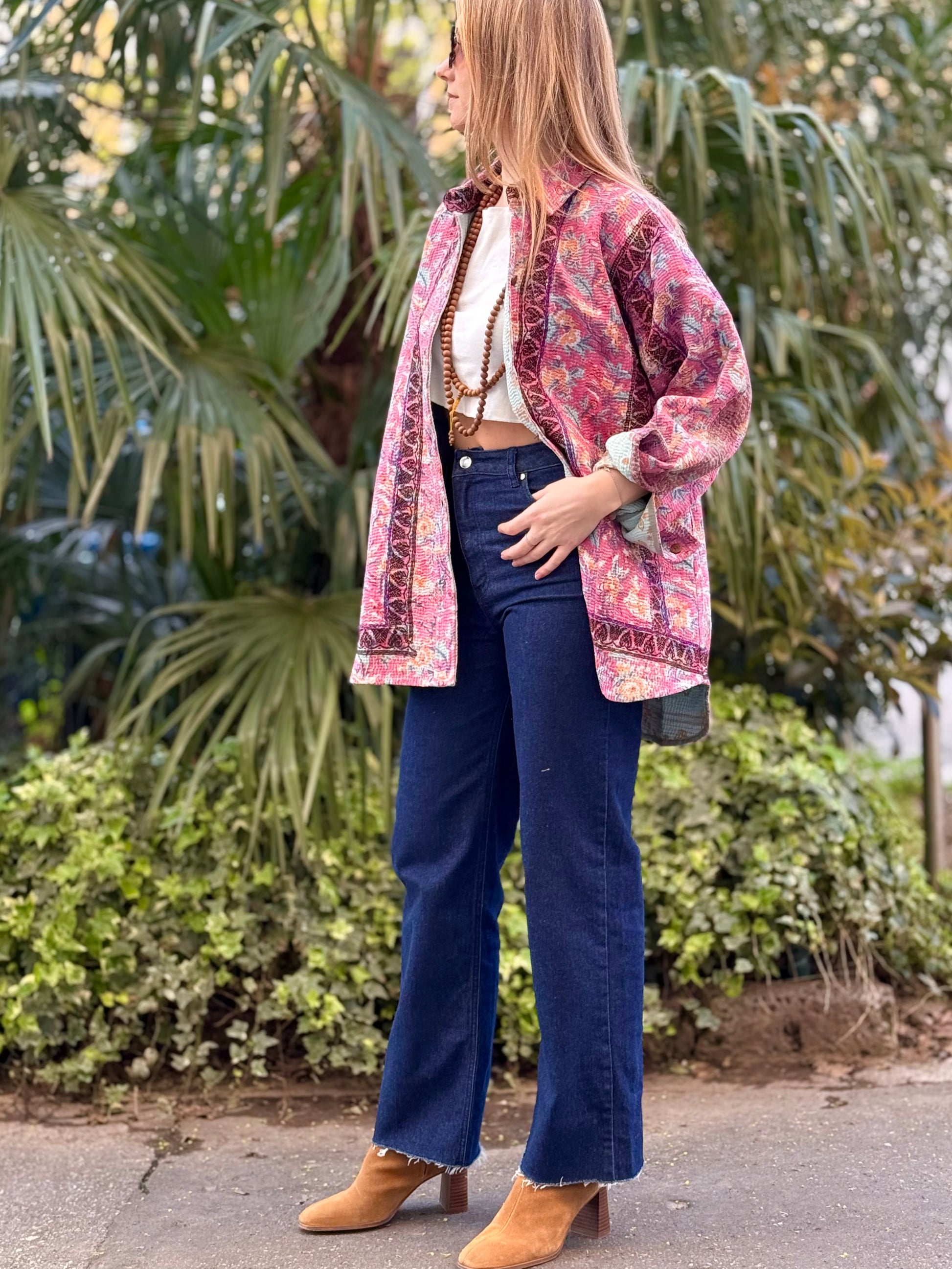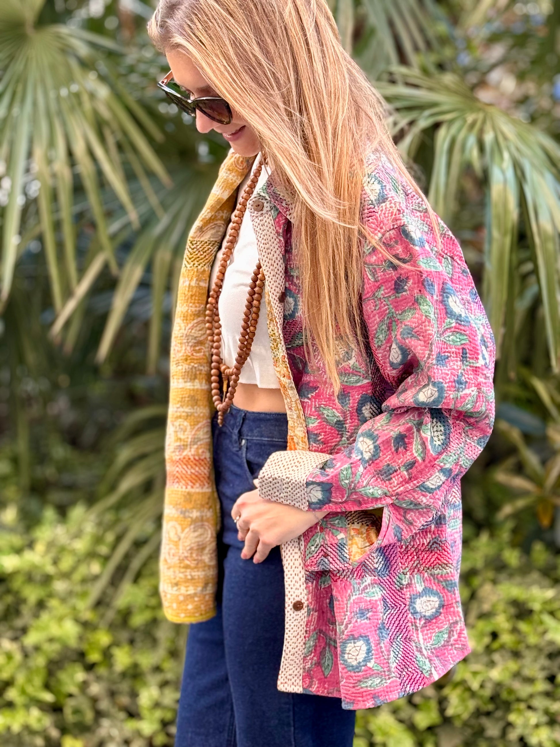 Over-Shirt Jacket with vintage Kantha fabric