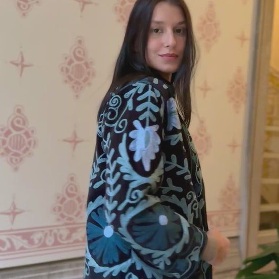 Velvet Suzani Embroidered Jacket - Black Small